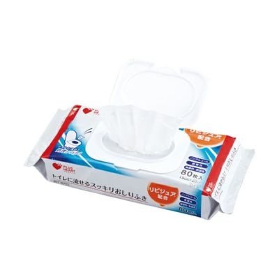 商品の特徴:・トイレに流せるおしりふき・片手でかんたんに取り出せる・ノンアルコール、無香料、無着色・保湿成分リピジュア配合