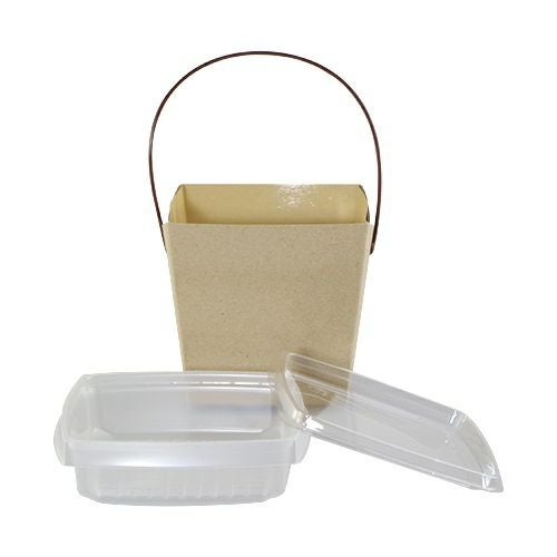 電子レンジ使用時:①嵌合容器の蓋を外す。②持ち手を側面に倒す。③様子を見ながら使用してください