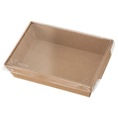 商品の特徴:クラフト紙がナチュラルな、紙製の食品容器です。 透明度の高いフタで中身が見えやすく、またフラットなフタなので販売時重ねて陳列することができます。