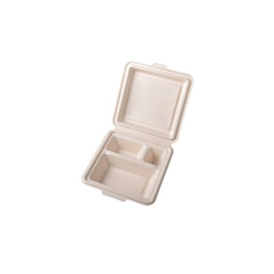商品の特徴:米飯がくっつきにくく、耐油性にも優れたバガス容器です。