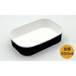 商品の特徴:テイクアウト・弁当・イベントなどに適した角型の紙容器。長方形の形状で食材がきれいに収まり、盛り付けが整う。650ml、955mlの2サイズ展開。電子レンジ対応。