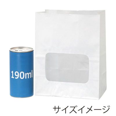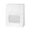 商品の特徴:口を閉じても中身が見える窓付き角底袋。耐油耐水紙でできているので、焼き菓子や揚げ物などの油分のある食品にもお使いいただけます。窓部分は防曇素材で曇りにくく、温かい出来立てにも。
