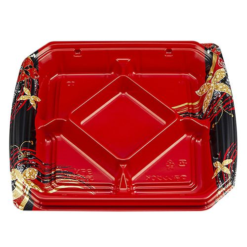 備考:変型、5柄で他弁当と差別化で付加価値を高める。テープレスの強嵌合で、テイクアウト、デリバリーの際蓋が外れにくい容器。