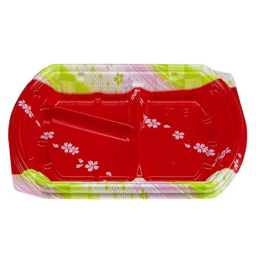 備考:変型、5柄で他弁当と差別化で付加価値を高める。テープレスの強嵌合で、テイクアウト、デリバリーの際蓋が外れにくい容器。