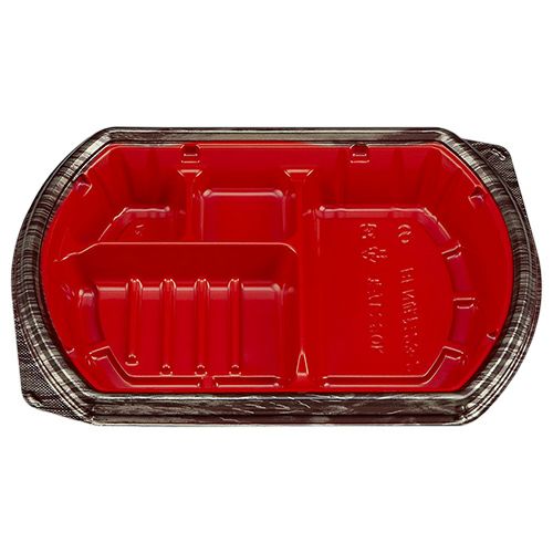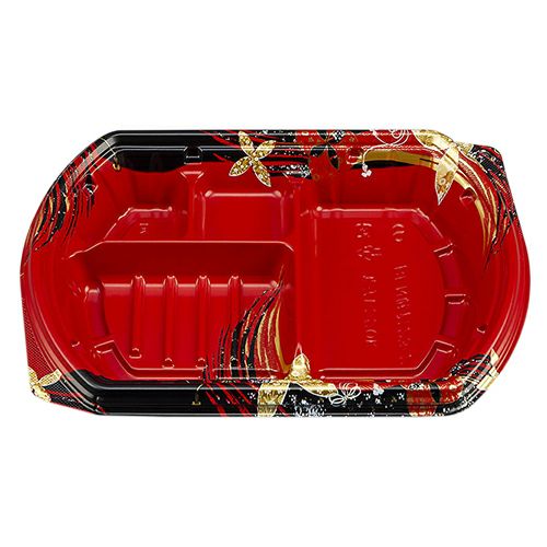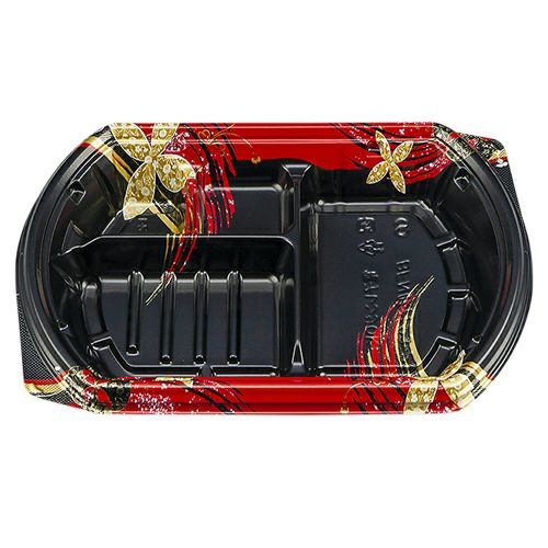 備考:変型、5柄で他弁当と差別化で付加価値を高める。テープレスの強嵌合で、テイクアウト、デリバリーの際蓋が外れにくい容器。