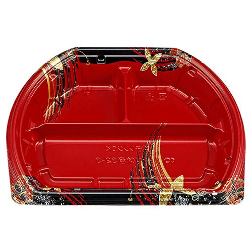 備考:変型、5柄で他弁当と差別化で付加価値を高める。テープレスの強嵌合で、テイクアウト、デリバリーの際蓋が外れにくい容器。