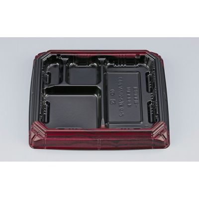 商品の特徴:蓋が外れにくい構造を有した、ハカマ形状の弁当用ソリッド容器