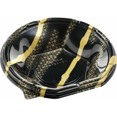 商品の特徴:形状が特徴的な半月型丼容器