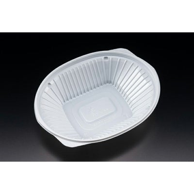 商品の特徴:楕円形状のサラダ容器。中皿、弊社ドレッシングカップ対応(60BL浅/TCL)。