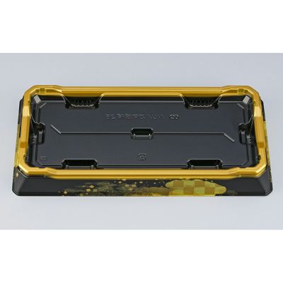 商品の特徴:ガラスのように透明感のある蓋を有したハカマ形状の寿司用発泡容器