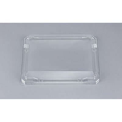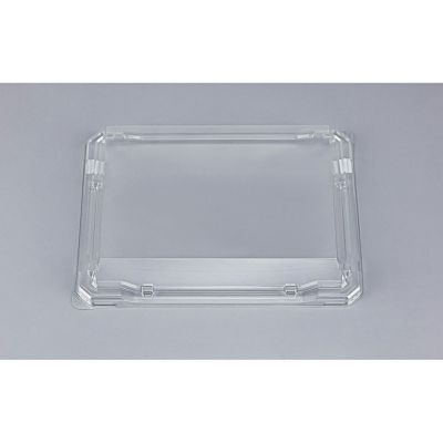 商品の特徴:ガラスのように透明感のある蓋を有したハカマ形状の寿司用発泡容器