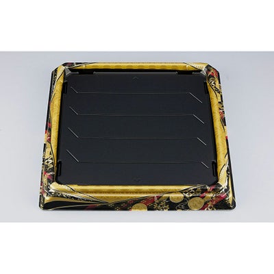 商品の特徴:蓋が外れにくい構造を有した、ハカマ形状の寿司用発泡容器