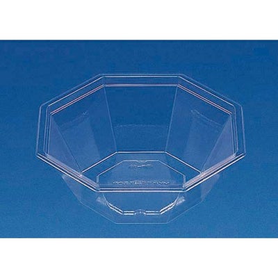 商品の特徴:八角形状のクリア容器。サラダ、スイーツ、惣菜と汎用性抜群。