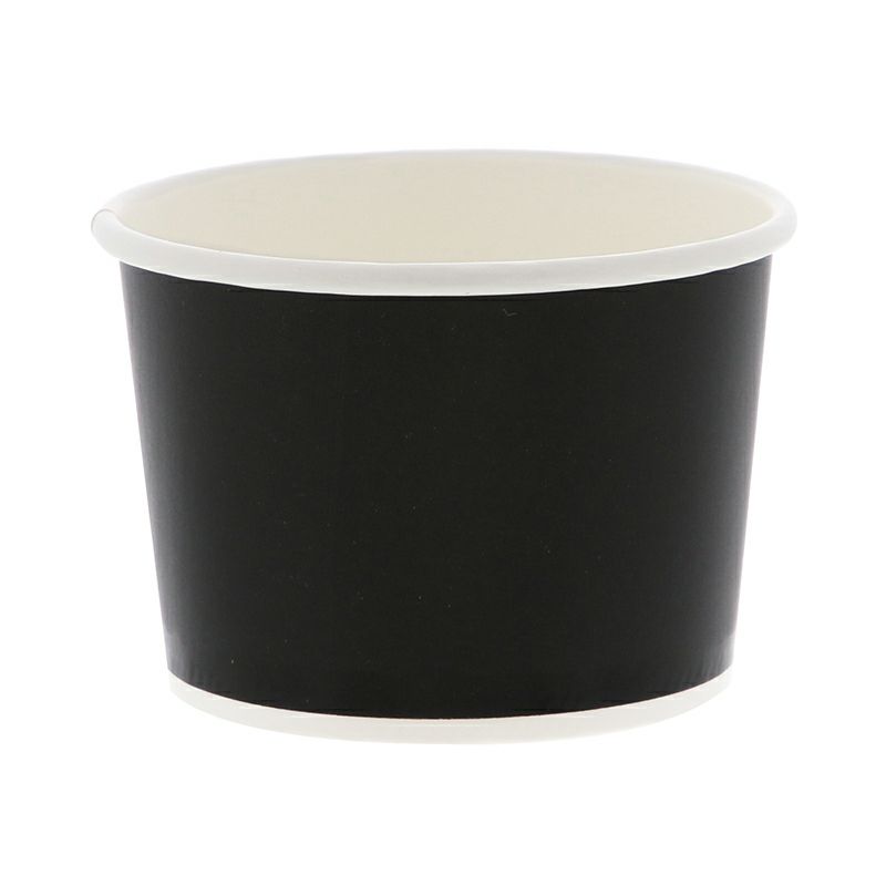 商品の特徴:内側・外側共にPEコーティングを施した、アイスやミニデザートにぴったりな小さめの黒い紙カップ。別売で「アイスカップ76-150用透明フタ」があります。食品衛生法規格基準適合商品です。●容量:約150ml