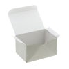 商品の特徴:ワンタッチで箱になる、グレーカラーの食品箱です。裏ネズのコートボール紙の風合いを利用して、印刷工程をカットしました。水分や油分が付着するとシミになりますのでご注意ください。食品が直接箱に当たらないよう、カップやケーキフィルムなどの併用をおすすめします。カットケーキ2~3個が目安です。