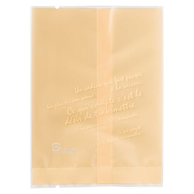 商品の特徴:マット仕上げの優しい半透明とデザイン文字の組み合わせが絶妙な楽しいガス袋(脱酸素剤・乾燥剤対応袋)です。パック正面にあらわれた文字は、邪魔にならないシンプルなデザインなので、どんなお菓子とも相性抜群です。
