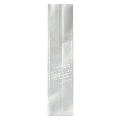 商品の特徴:マット仕上げの優しい半透明とデザイン文字を組み合わせたガス袋(脱酸素剤・乾燥剤対応袋)です。パック正面にあらわれた文字は、邪魔にならないシンプルなデザインなので、どんなお菓子とも相性抜群です。