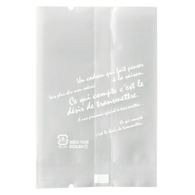 商品の特徴:マット仕上げの優しい半透明とデザイン文字を組み合わせたガス袋(脱酸素剤・乾燥剤対応袋)です。パック正面にあらわれた文字は、邪魔にならないシンプルなデザインなので、どんなお菓子とも相性抜群です。