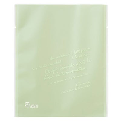 商品の特徴:マット仕上げの優しい半透明とデザイン文字の組み合わせが絶妙な楽しいガス袋(脱酸素剤・乾燥剤対応袋)です。パック正面にあらわれた文字は、邪魔にならないシンプルなデザインなので、どんなお菓子とも相性抜群です。