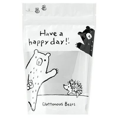 商品の特徴:クマのゆるいイラストが可愛いグラットンベアシリーズの乾燥剤対応のジップ付きスタンド袋です。クマの兄弟「ブベベ」と「ホベベ」のイラストがキュート。サイズごとにデザインが違うため、にぎやかで楽しい売場作りに役立ちます。ぜひガス袋(脱酸素剤対応袋)やクッキー袋(乾燥剤対応袋)などと揃えて、可愛い売場作りにお役立てください。