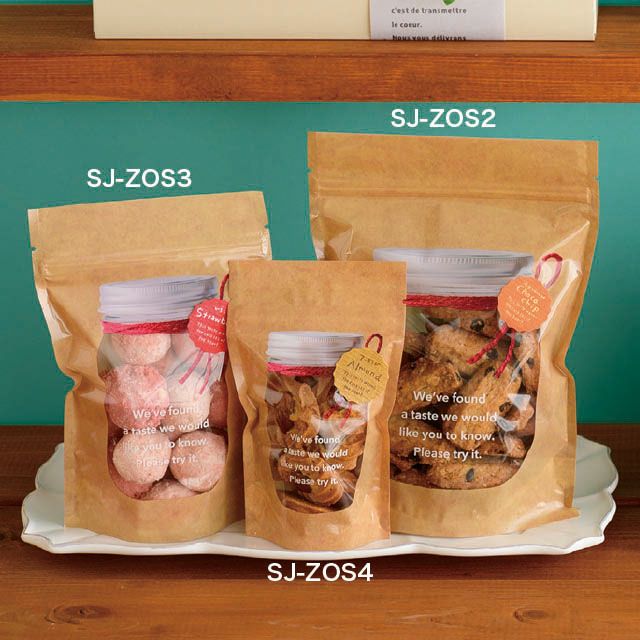 商品の特徴:ビンが印象的なジップ付きのスタンドバッグです。小さな焼菓子をごろっと入れるのにオススメです。お菓子の見える範囲が小さめなので、少しの量でもたくさん入っているように見えるのもポイントです。デザイン違いのスイーツキャニスターゼリースタンドバッグもおすすめです。