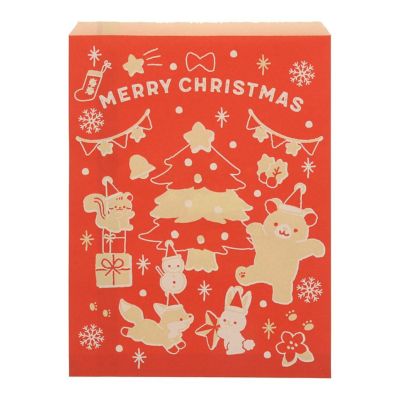 商品の特徴:半晒紙をベースに、森の動物たちが集まってクリスマスパーティを楽しんでいるほっこりしたデザインです。一般に書店や文具店などで多く使われているタイプの平袋です。雑貨などの小物を入れるのに適しています。●入数:200枚