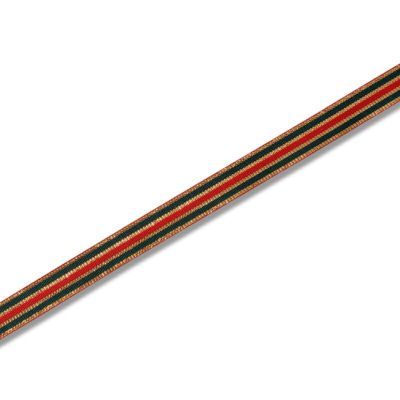 商品の特徴:ゴールドに緑と赤の細いラインが入ったリボンです。