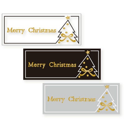 モノトーンに金箔のアクセントが光るシンプルなクリスマスシール。袋の口留めやリボンの端を留めるのに使いやすい長方形。3色アソート。●36枚入(12枚×3シート)【印字内容】Merry Christmas