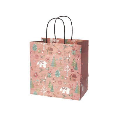 北欧の森を感じる和やかなデザインです。使い勝手の良いサイズの手提げ袋です。●手紐:丸紐:黒●入数:25枚