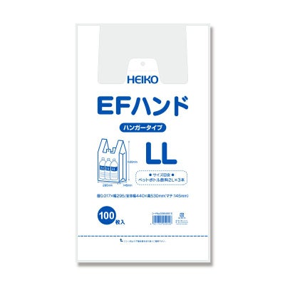 商品の特徴:プレーンな乳白色のレジ袋です。口を開きやすくする効果と強度向上のため、表面にエンボス加工を施しています。フックに掛けて吊り下げ、ミシン目から切り離して使用するハンガータイプ。東日本45号/西日本45号に準じた規格となりますが、サイズは若干異なりますのでご注意ください。食品衛生法規格基準適合商品です。●容量の目安:ペットボトル飲料2L×3本