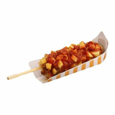 このスティック紙トレーは、フランクフルトやホットドッグを提供する際のコストパフォーマンスも魅力の一つ。