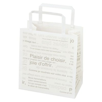 商品の特徴:人気のカフェオレシリーズの紙袋。アイボリーとグレーでどんなテイストにも合うナチュラルなデザインのペーパーバッグです。