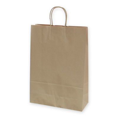 商品の特徴:プレーンなクラフト紙の手提げ袋です。無地ものですので、さまざまな用途にご利用いただけます。定番規格の2才とカスタム判の中間サイズです。●手紐:丸紐未晒