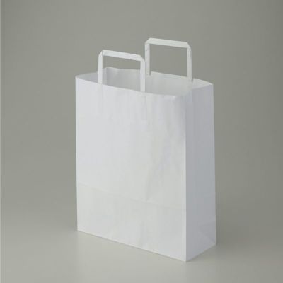 商品の特徴:もっとも汎用性の高い、プレーンな白無地の手提げ袋です。表面に艶のない、晒クラフト紙を使用しております。縦型でA4サイズ対応規格です。未使用時には紐が飛び出ていないため、在庫スペースにやさしい平紐タイプです。●手紐:平紐白