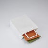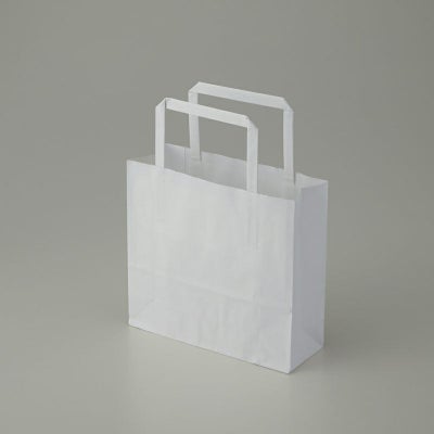 商品の特徴:もっとも汎用性の高い、プレーンな白無地の手提げ袋です。表面に艶のない、晒クラフト紙を使用しております。25チャームバッグの中でも、容積が最小の規格です。紐は外に出た状態で包装してあります。●手紐:平紐白
