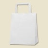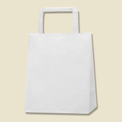 商品の特徴:もっとも汎用性の高い、プレーンな白無地の手提げ袋です。25チャームバッグの中で、正面巾が最小の規格のひとつです。表面に艶のない、晒クラフト紙を使用しております。紐は外に出た状態で包装してあります。●手紐:平紐白