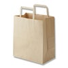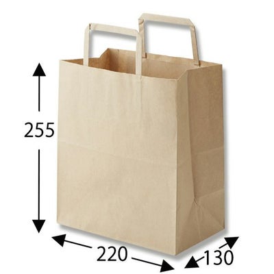 商品の特徴:プレーンなクラフト紙の手提げ袋です。無地ものですので、さまざまな用途にご利用いただけます。小型ながらマチ幅が広めの人気サイズです。未使用時には紐が飛び出ていないため、在庫スペースにやさしい平紐タイプです。●手紐:平紐未晒