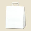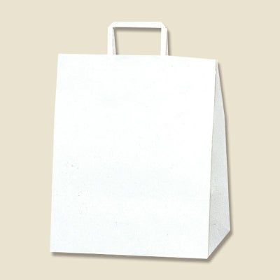 商品の特徴:もっとも汎用性の高い、プレーンな白無地の手提げ袋です。表面に艶のない、晒クラフト紙を使用しております。代表的なマチ広規格です。未使用時には紐が飛び出ていないため、在庫スペースにやさしい平紐タイプです。●手紐:平紐白