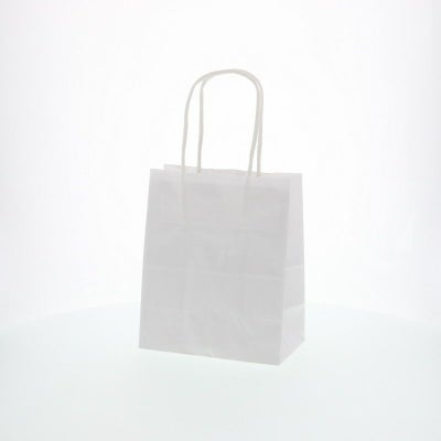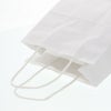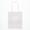 商品の特徴:もっとも汎用性の高い、プレーンな白無地の手提げ袋です。表面に艶のない、晒クラフト紙を使用しております。25チャームバッグの中で、正面巾が最小の規格のひとつです。●手紐:丸紐白