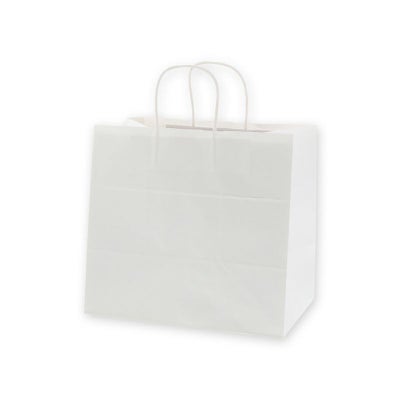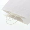 商品の特徴:もっとも汎用性の高い、プレーンな白無地の手提げ袋です。マチを広く高さを低く設計した規格で、洋菓子・和菓子・お弁当など、平たいものをそのままの向きで収納したい場合に最適です。●手紐:丸紐白