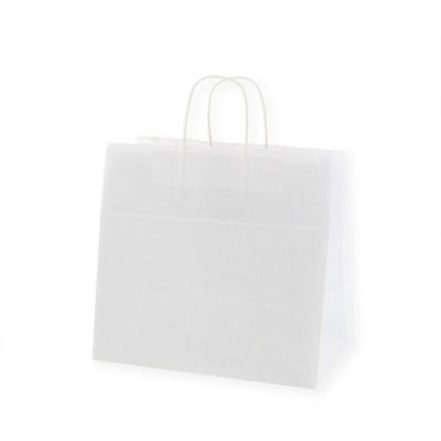 商品の特徴:もっとも汎用性の高い、プレーンな白無地の手提げ袋です。表面に艶のない、晒クラフト紙を使用しております。●手紐:丸紐白