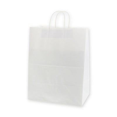商品の特徴:もっとも汎用性の高い、プレーンな白無地の手提げ袋です。高さがあり、マチもワイドなゆったりサイズ。表面に艶のない、晒クラフト紙を使用しております。●手紐:丸紐白