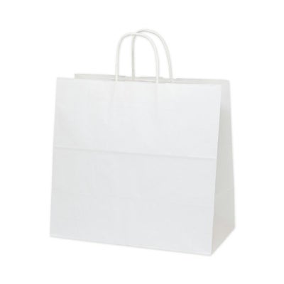 商品の特徴:定番規格の34-1(340×220×320)と45-1(450×220×455)の中間サイズに位置します。汎用性の高い、プレーンな白無地の手提げ袋です。表面に艶のない、晒クラフト紙を使用しております。●手紐:丸紐白