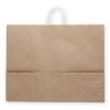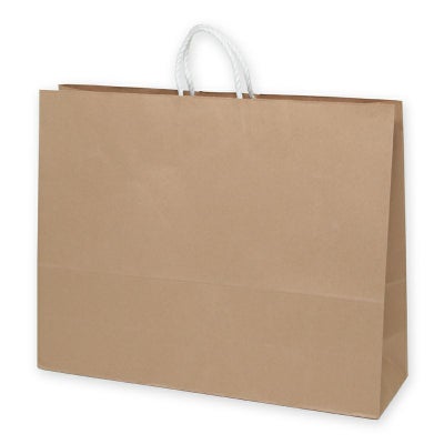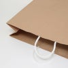 商品の特徴:プレーンなクラフト紙の手提げ袋です。無地ものですので、さまざまな用途にご利用いただけます。25チャームバッグの中で、最も正面巾が広く、最大容量のサイズです。●手紐:PP紐白