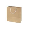 商品の特徴:袋本体の穴に通した手紐を結んで取り付けたタイプの手提げ紙袋です。口を内側に折り返し、ボール紙を挟んで強度を持たせています。口折り部分に厚紙を入れて補強し穴をあけて手紐を結んだタイプの手提げ袋です。正面の見た目がほぼ正方形のオールマイティモデル。様々なシーンに調和する未晒クラフト無地。●手紐:PP紐白