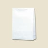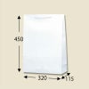 商品の特徴:袋本体の穴に通した手紐を結んで取り付けたタイプの手提げ紙袋です。口を内側に折り返し、ボール紙を挟んで強度を持たせています。縦長のスタンダードサイズで、A3縦対応。汎用性の高い白無地。●手紐:PP紐白