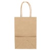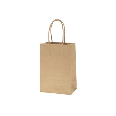 商品の特徴:樹脂製の接着剤で手紐を取り付けた手提げ紙袋です。紐の結び目がなくすっきりし、物の出し入れがスムースで、ストックする際にかさばらないメリットがあります。コンパクトな人気サイズで、小物雑貨やちょっとしたギフトに。ナチュラル志向の未晒無地。●手紐:丸紐未晒