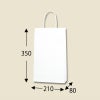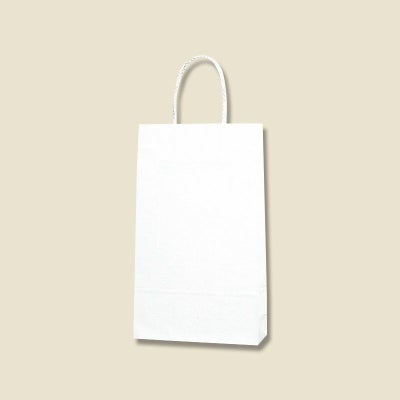商品の特徴:樹脂製の接着剤で手紐を取り付けた手提げ紙袋です。紐の結び目がなくすっきりし、物の出し入れがスムースで、ストックする際にかさばらないメリットがあります。A4縦対応の定番中型サイズ。汎用性の高い白無地。●手紐:PP紐白