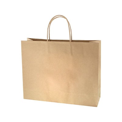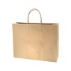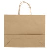 商品の特徴:樹脂製の接着剤で手紐を取り付けた手提げ紙袋です。紐の結び目がなくすっきりし、物の出し入れがスムースで、ストックする際にかさばらないメリットがあります。小柄な方に嬉しい横型フォルム。ナチュラル志向の未晒無地。●手紐:丸紐未晒