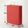 商品の特徴:クラフト紙に赤ベタを印刷した手提げ紙袋です。色落ちを緩和させるために、上からニスを塗布しています。●手紐:丸紐未晒
